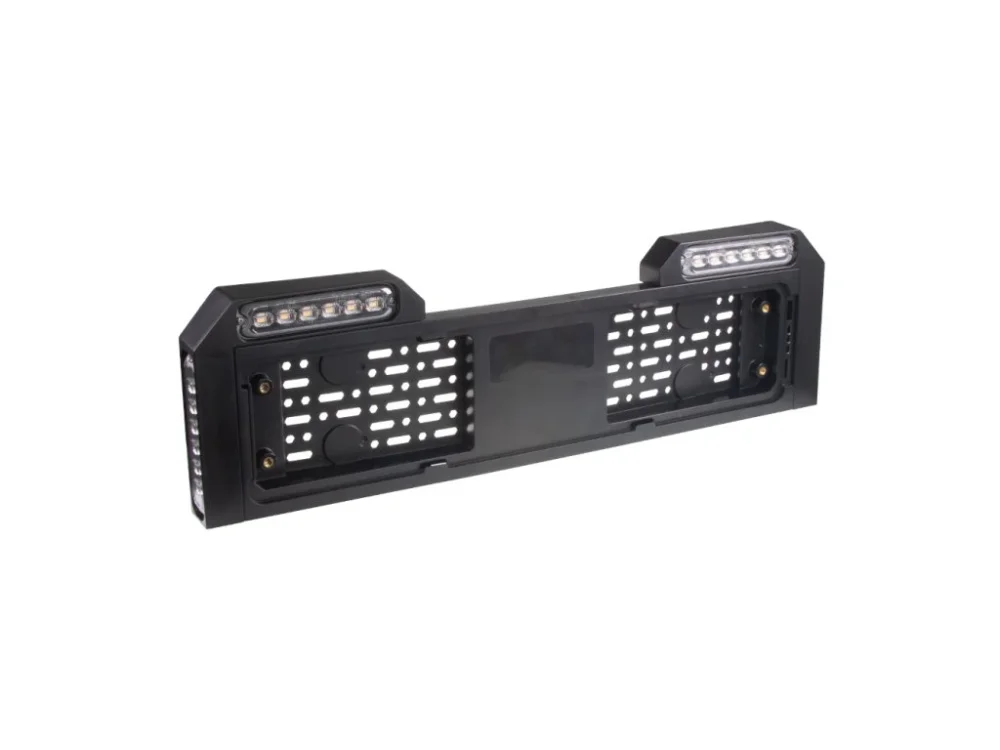 Podložka pod SPZ s vestavěnými oranžovými LED výstražnými světly.