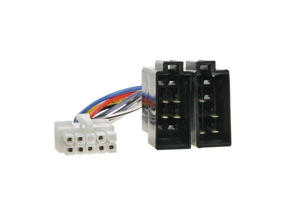 Kabelové svazky pro autorádia s originálním konektorem na straně autorádia aISO konektorem na straně automobilu. Délka vodičů 12-13cm, Barevně značené vodiče s popisem.