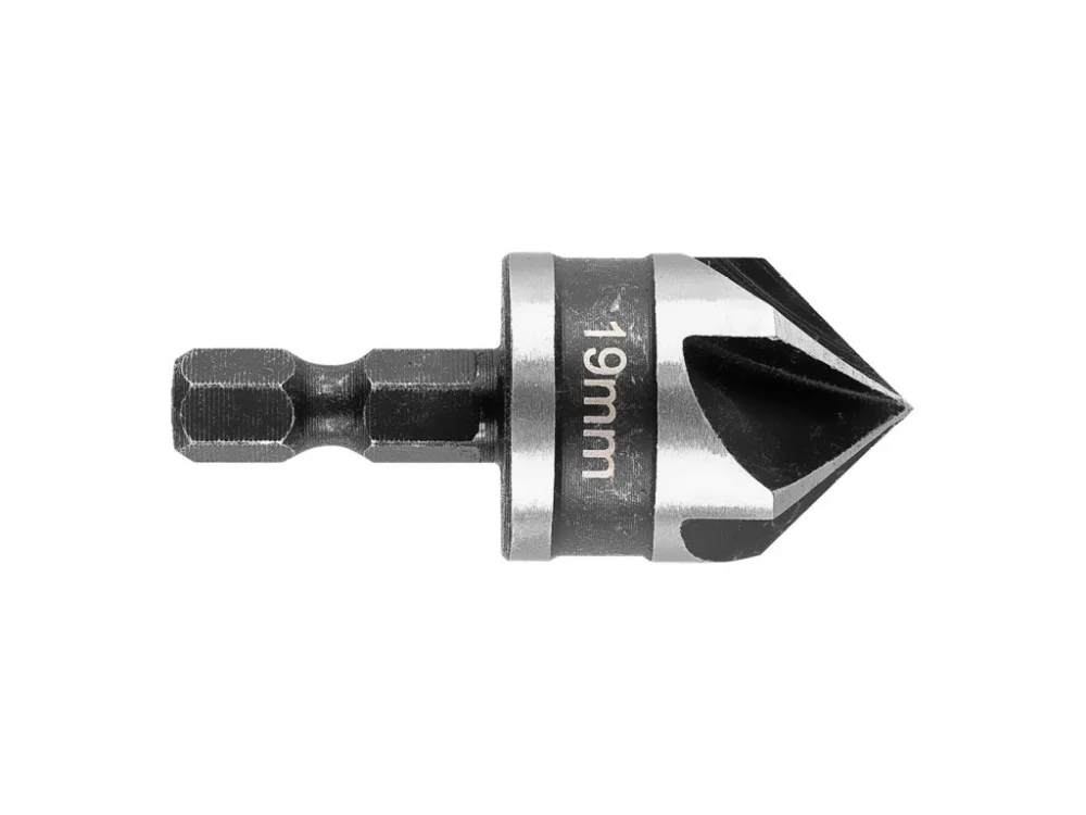 ?estihranná faseta, 19 mm 54T422 od společnosti GRAPHITE je nástroj pro vytvoření fasety ve vyvrtané díře, která umožňuje skrytí hlavy šroubu nebo šroubu v materiálu – ve dřevě, hliníku a plastu. Fazeta má rukojeť typu HEX ?\\“ a celkovou délku 45 mm. Je vhodná pro šroubováky a vrtačky. Fázovač od značky GRAPHITE bude dobrým doplňkem do sady nářadí každého kutila.