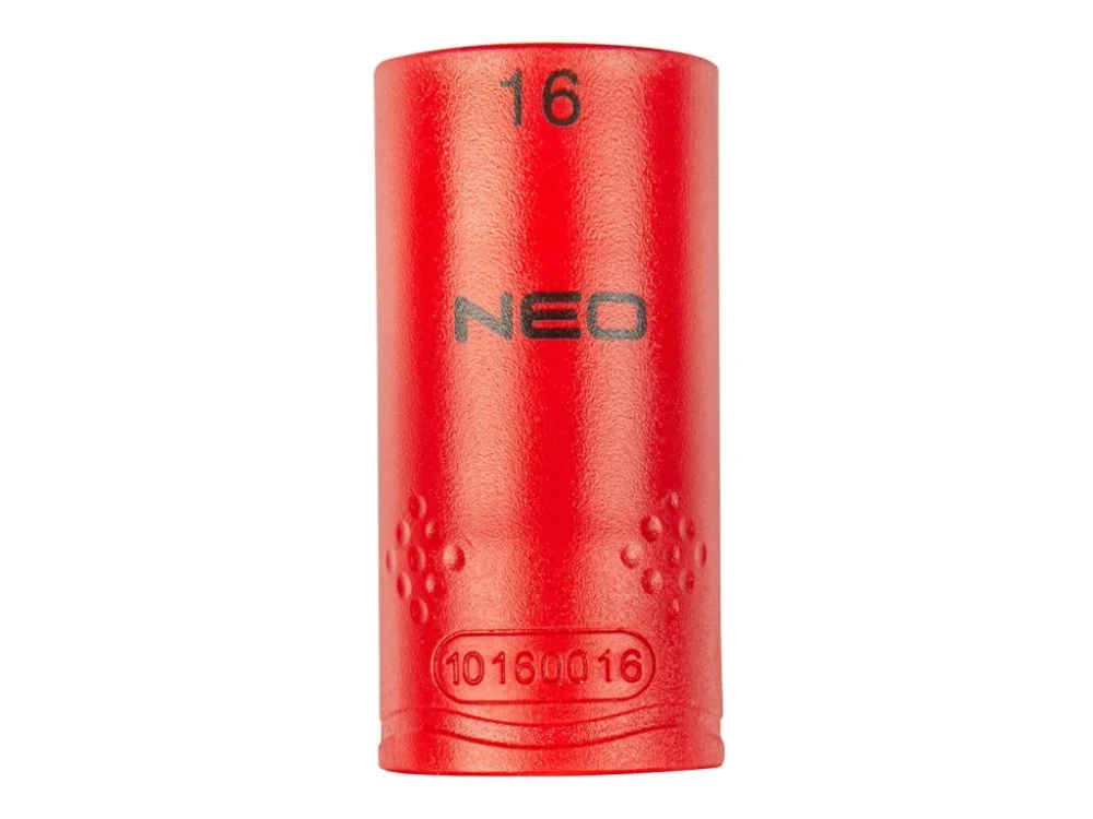 ?estihranný nástavec 1/2\\“ NEO (ref. č. 01-186) o velikosti 16 mm, zhotovený z odolné chromovo-vanadiové oceli. Certifikován pro práci pod napětím do 1000 V. ?estihranný tvar nástavce zabraňuje deformaci hlavy šroubu.