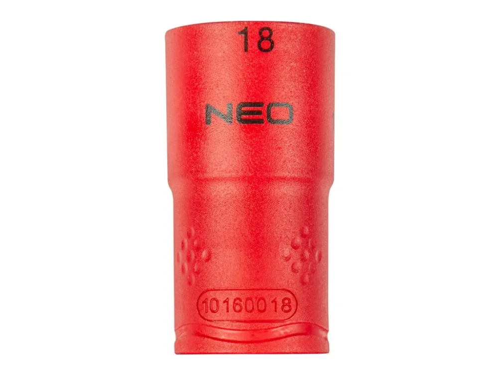 ?estihranný nástavec 1/2\\“ NEO (ref. č. 01-188) o velikosti 18 mm, zhotovený z odolné chromovo-vanadiové oceli. Certifikován pro práci pod napětím do 1000 V. ?estihranný tvar nástavce zabraňuje deformaci hlavy šroubu.