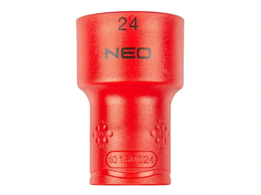 ?estihranný nástavec 1/2\\“ NEO (ref. č. 01-192) o velikosti 24 mm, zhotovený z odolné chromovo-vanadiové oceli. Certifikován pro práci pod napětím do 1000 V. ?estihranný tvar nástavce zabraňuje deformaci hlavy šroubu.