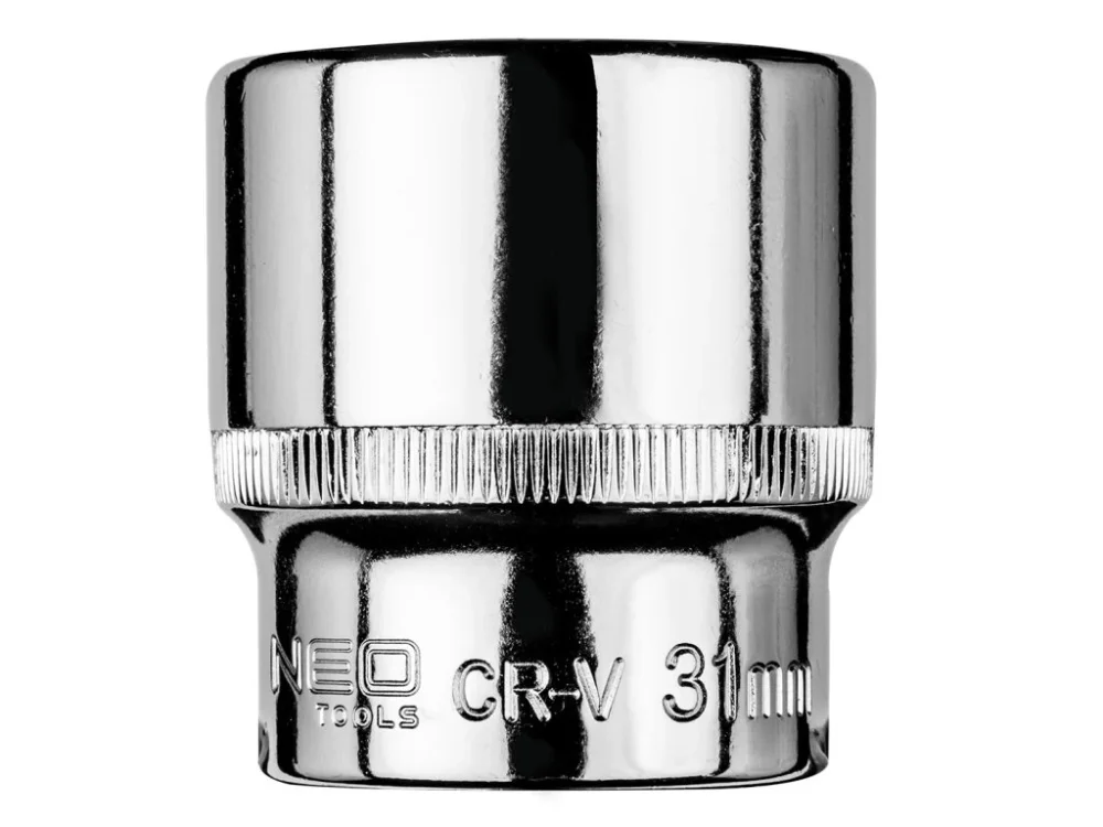 1/2\\“ šestihranná objímka 31 mm NEO (ref. 08-431) z odolné chrom-vanadiové oceli. Vlnitý povrch zlepšuje přilnavost zásuvky. Kvalitu nástroje potvrzuje 25-letá záruka výrobce. Značka NEO splňuje očekávání profesionálů.