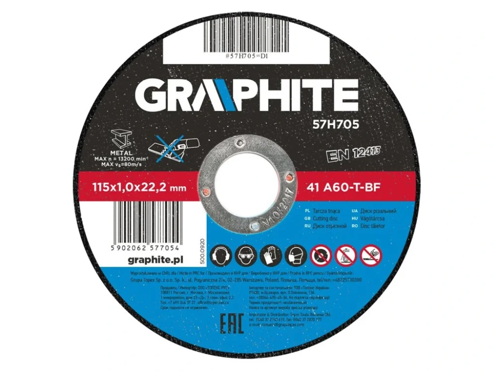 ?ezací kotouč na kov GRAPHITE díky pokročilé konstrukci a redukci tloušťky umožňuje významně snížit dobu řezání. Poskytuje vysokou úroveň bezpečnosti díky souladu výrobku s normou EN12413.
