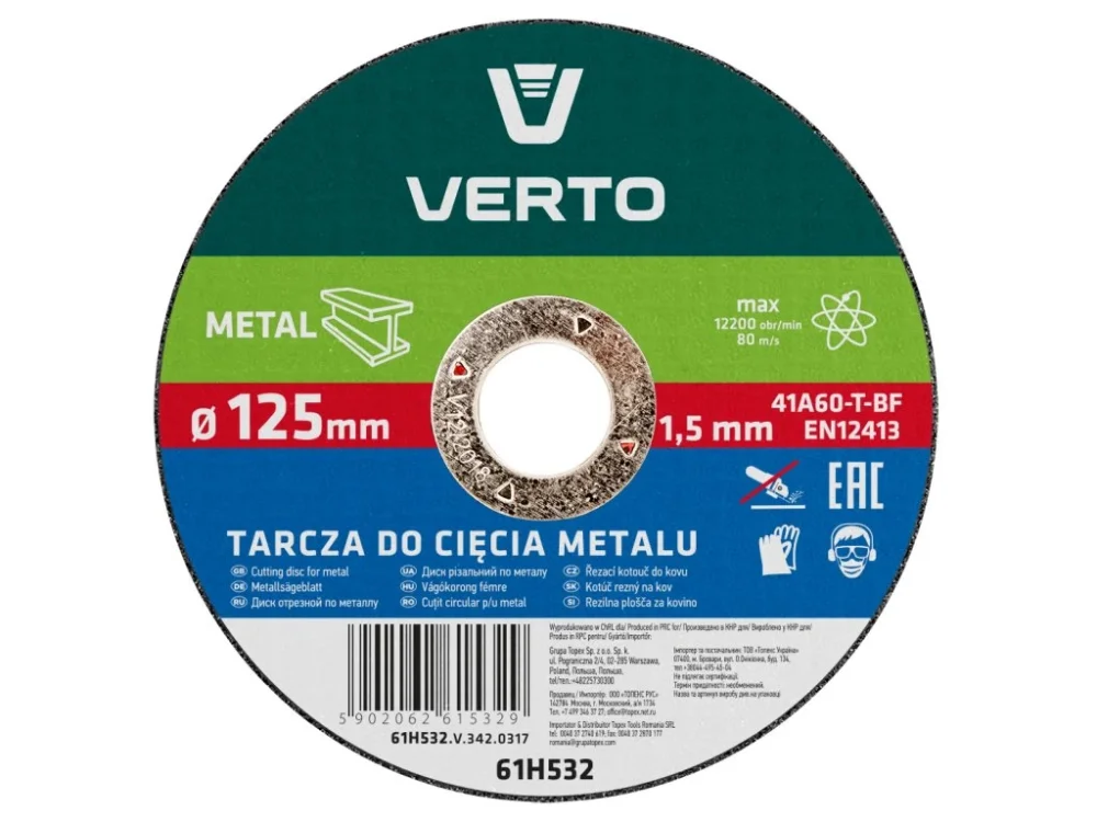 Kotouč na řezání kovů VERTO (ref. 61H532) o vnějším průměru 125 mm výrazně zkracuje čas řezání díky své menší tloušťce. Díky vysoké úrovni bezpečnosti práce díky shodě výrobku s normou EN 12413 nabízí značka VERTO sortiment elektrického nářadí a příslušenství pro každého kutila.