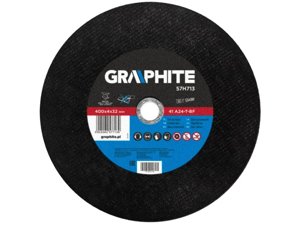 Kotouč pro řezání kovů GRAPHITE (ref. 57H713) o vnějším průměru 400 mm je díky své zesílené konstrukci ideální pro mechanické stroje pro řezání oceli. Poskytuje vysokou úroveň bezpečnosti práce, protože výrobek splňuje normu EN 12413.