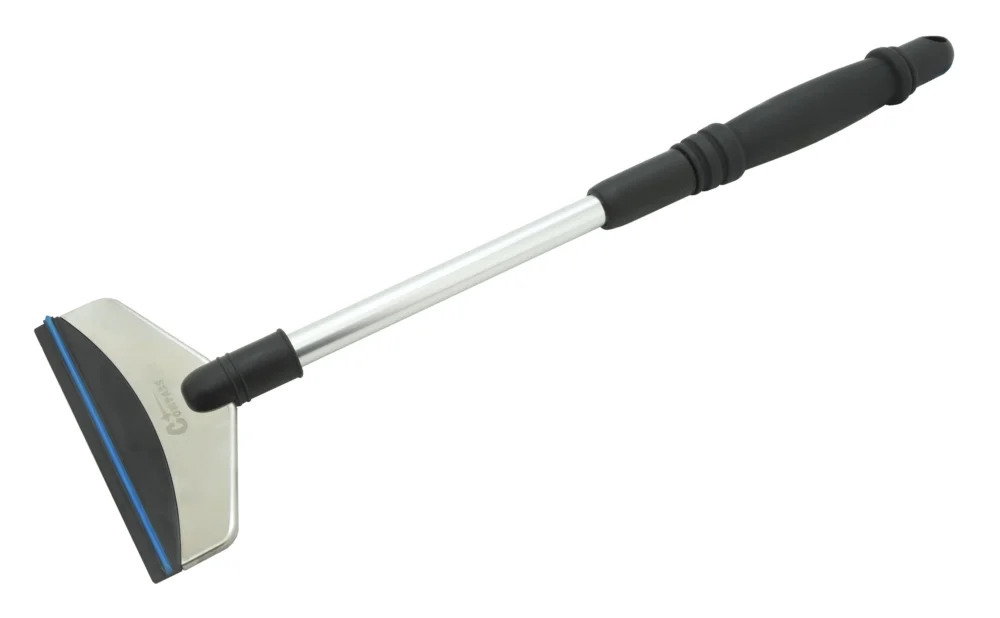 Gumová stěrka zajistí snadné stírání vody. ?ířka škrabky a stěrky 14 cm zabezpečí rychlé a šetrné očištění skel.