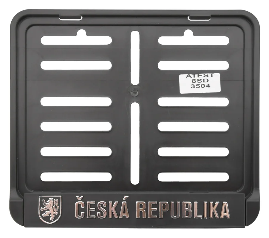 Plastová moto-podložka pod tabulku registrační značky (RZ) nebo státní poznávací značky (SPZ) běžných rozměrů pro motocykly.