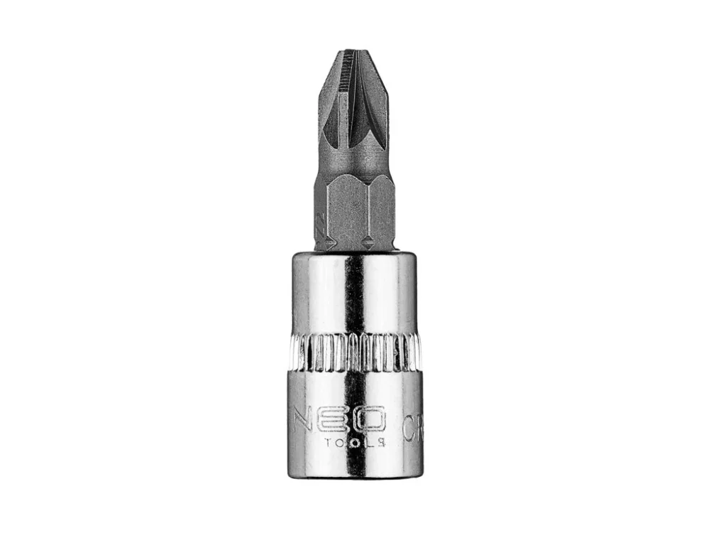 ?roubovací bit PZ2 na ?\\“ zásuvce, krátký, 37 mm 10-320 od společnosti NEO TOOLS je bit PZ2 na ?\\“ zásuvce o celkové délce 37 mm a délce pracovní části 18 mm. Je vyroben z vysoce kvalitní chrom-vanadiové oceli, což zaručuje dlouhou životnost výrobku. Používá se především pro výměnu poškozených a ztracených součástí soupravy. Doporučuje se pro profesionály a domácí kutily. K dispozici v mnoha variantách.