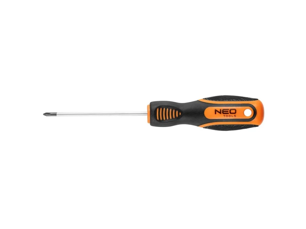 Křížový šroubovák NEO (ref. 04-177) užitečný při mechanických pracích a kutilství. 75 mm dlouhá čepel vyrobená z odolné chrom-vanadiové oceli, která zaručuje dlouhou životnost nástroje. Magnetický hrot z tvrzené oceli PH0 usnadňuje používání nástroje. Ergonomická plastová rukojeť pokrytá protiskluzovým materiálem zajišťuje bezpečnost a pohodlí při práci. Značka NEO splňuje očekávání profesionálů.