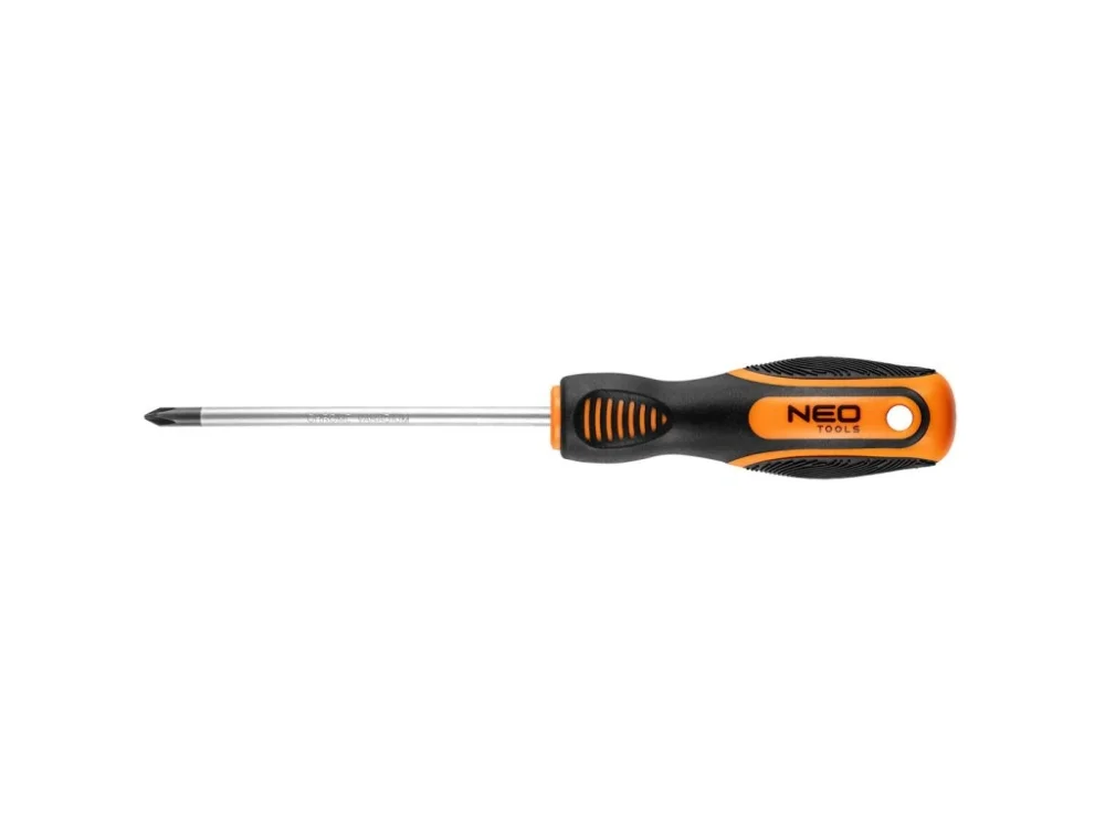 Křížový šroubovák NEO (ref. 04-178) užitečný při mechanických pracích a kutilství. ?epel o délce 100 mm je vyrobena z odolné chrom-vanadiové oceli, což zaručuje dlouhou životnost nástroje. Magnetický hrot z kalené oceli PH1 usnadňuje používání nástroje. Ergonomická plastová rukojeť pokrytá protiskluzovým materiálem zajišťuje bezpečnost a pohodlí při práci. Značka NEO splňuje očekávání profesionálů.