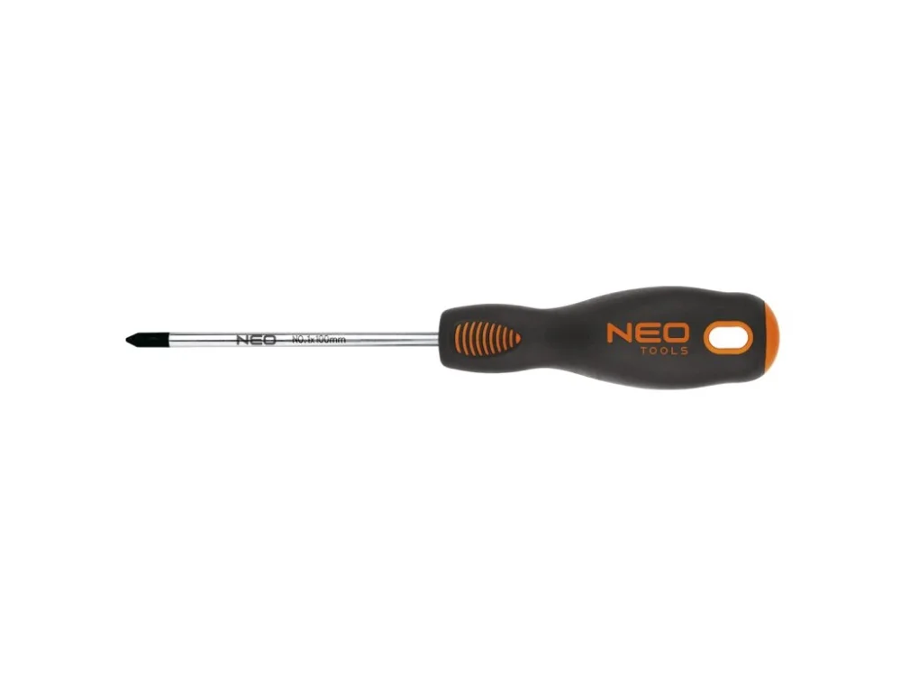 ?roubovák NEO s křížovou hlavou PZ (ref. 04-031) o rozměrech PZ0 x 75 mm. ?epel šroubováku je vyrobena z mimořádně odolné oceli S2. Pracovní konec čepele byl tepelně zpracován, díky čemuž bylo dosaženo vhodné tvrdosti a odolnosti proti ohybu 56 HRC. ?roubovák má magnetický hrot. Trojúhelníkový tvar rukojeti s profilovanou opěrkou palce snižuje zatížení ruky během práce a usnadňuje dosažení optimálního točivého momentu. Rukojeť ze dvou materiálů zabraňuje klouzání v ruce a je odolná vůči chemikáliím, olejům a tukům. Kvalitu nástroje potvrzuje certifikát T\\u00DCV a 25letá záruka výrobce. Značka NEO splňuje očekávání profesionálů.