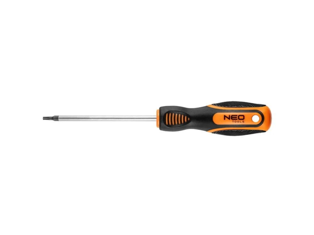 ?roubovák NEO Torx (ref. 04-187) užitečný při mechanických pracích a kutilství. ?epel o délce 100 mm je vyrobena z odolné chrom-vanadiové oceli, což zaručuje dlouhou životnost nástroje. Magnetický hrot z kalené oceli T15 usnadňuje používání nástroje. Ergonomická plastová rukojeť pokrytá protiskluzovým materiálem zajišťuje bezpečnost a pohodlí při práci. Značka NEO splňuje očekávání profesionálů.