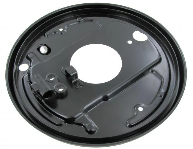 Brzdový štít pro bubny v černém laku zadní levý.Rear brake backing plate left.T.2 Bus r.v. 8/67 \\u00BB 7/70