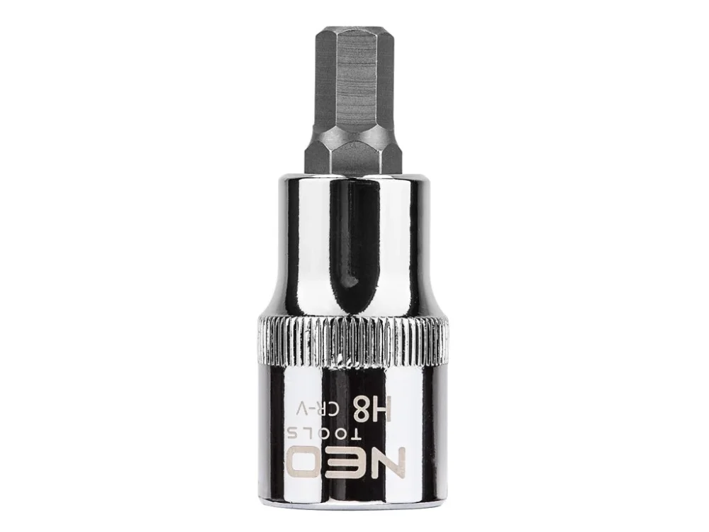 ?estihranná koncovka na 1/2\\“ nástrčku NEO (ref. 08-773) velikost H8, délka 55 mm, dle DIN 7422. Nástrčka je vyrobena z odolné chrom-vanadové oceli. ?estihranný konec z vysoce kvalitní legované oceli S2. zárukou výrobce. Značka NEO splňuje očekávání profesionálů.