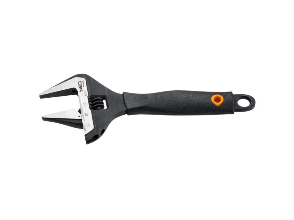 Nastavitelný klíč NEO (ref. 03-015) o délce 150 mm, kovaný z odolné chrom-vanadiové oceli. Vyznačuje se velmi širokým rozsahem nastavení čelistí až do 34 mm. ?ířka čelistí je o 40 % širší než u standardních klíčů. Prodloužená a zúžená hlava umožňuje práci na obtížně přístupných místech. Ergonomická rukojeť z plastu TPR odolného vůči olejům a tukům. Kvalita nářadí potvrzená certifikátem T\\u00DCV a 25letou zárukou výrobce. Značka NEO splňuje očekávání profesionálů.