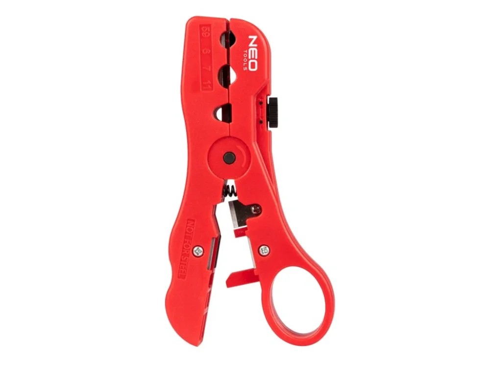 Odstraňovač izolace koaxiálních kabelů 01-554 od společnosti NEO TOOLS je nezbytným nástrojem pro každého instalatéra a elektrikáře. Je určen pro kabely RG 6-7-11-59 a ploché telefonní a internetové kabely 4P/6P/8P. Praktický stahovák o velikosti 125 mm se osvědčí při každodenní práci.