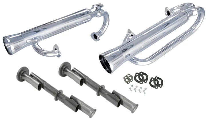 Kompletní tlumič výfuk se svody z nerezové oceli (racing systém).Koncové trubky, zasahují nad víka ventilů. Konstrukce umožňuje montáž i vyjmutí