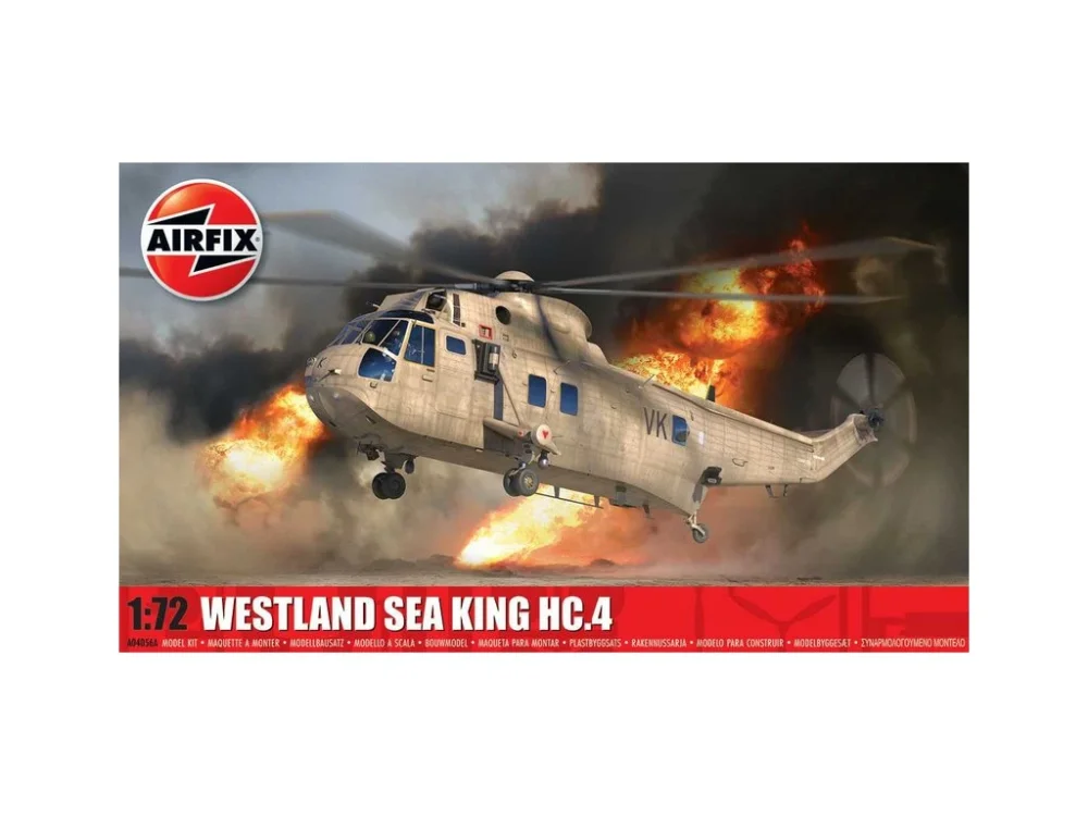 Airfix plastikový model helikoptéry Westland Sea King HC.4 v měřítku 1:72 ke slepení. Stavebnice obsahuje 133 dílků, rozpětí rotoru 263 mm, obtížnost 2.