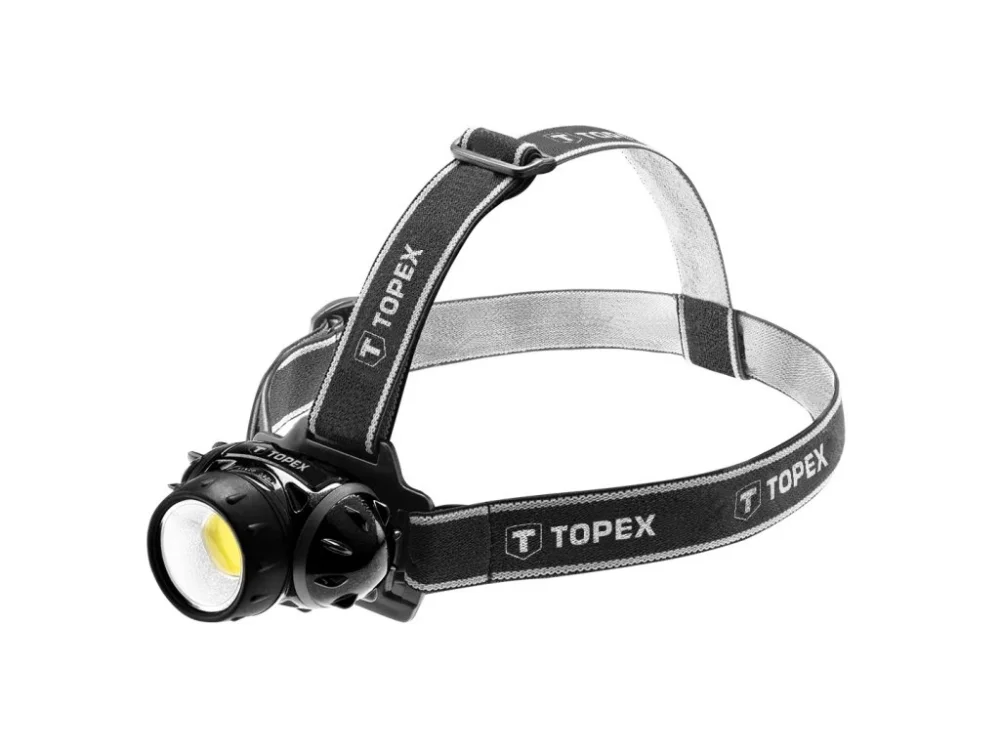 3W čelová baterka TOPEX (ref. 94W391) napájená bateriemi AAA, vyznačující se silným světelným tokem 160 lumenů. Nastavitelný úhel světla zvyšuje funkčnost zařízení. LED dioda COB použitá v baterce se vyznačuje naprosto plynulým světlem a spolehlivostí. Svítilna se vyznačuje vysokým stupněm ochrany dle IP44. Výrobek má široké využití včetně dílny, elektrikáře, instalatéra, kempu, turistiky, sportu. Značka TOPEX je určena pro domácí kutily.