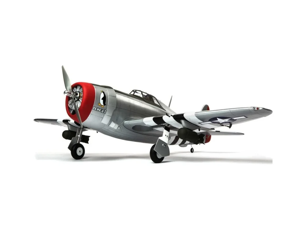 Americká legenda, těžký stíhač P-47D Thunderbolt v modelářském provedení. RC model o rozpětí 1,7 m je celodřevěné konstrukce s hotovou kamufláží. Motor lze doporučit benzínový 20cc nebo elektromotor, model má vztlakové klapky a pevný podvozek, který lze vyměnit za zatahovací elektrický E-flite. Má kabinu vybavenou figurkou pilota, řízené ostruhové kolečko, řadu maketových prvků. Dvoudílná konstrukce křídla usnadňuje přepravu a skladování. Bohatá povrchová úprava se saténovým finišem, jemné přechody barev a detaily panelových linií vytvářejí realistický vzhled hodný muzejní expozice. Součástí balení jsou různé varianty samolepek pro možnost vlastního přizpůsobení.