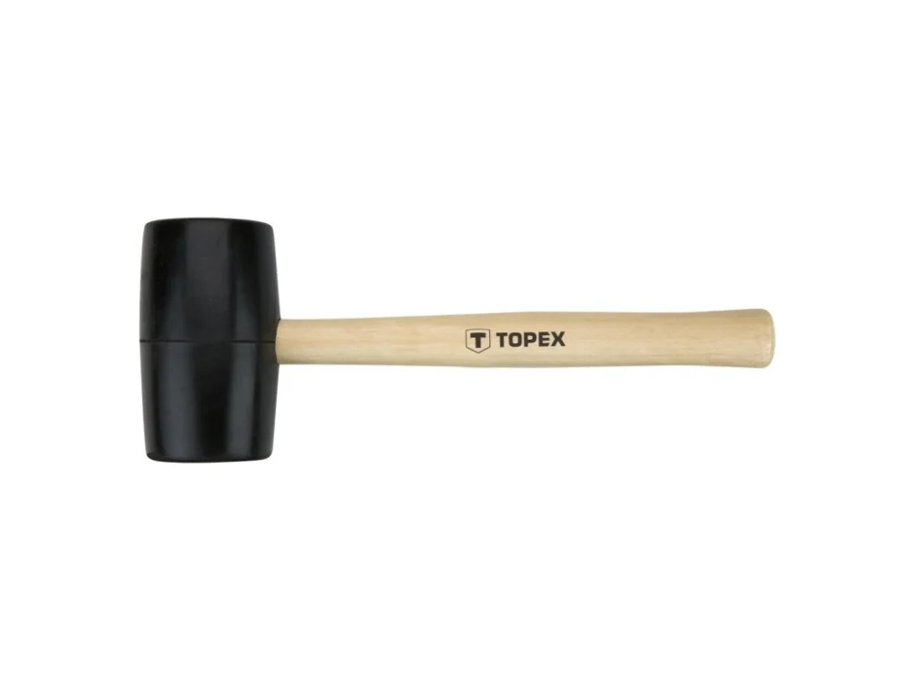 Gumové kladivo TOPEX (ref. 02A344) o hmotnosti 450 g a průměru stopky 58 mm se používá zejména při stavebních a dokončovacích pracích, protože guma nepoškodí křehký materiál. Rukojeť je vyrobena z kvalitního dřeva, odolného vůči mechanickému poškození, a díky lehkému profilu dobře padne do ruky. Značka TOPEX je určena pro domácí kutily.