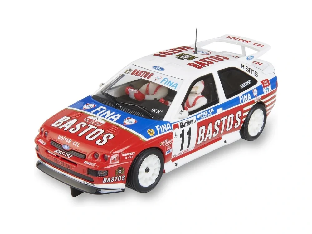 Dráhové autíčko SCX Original Ford Escort Cosworth – Ypres 1995 v měřítku 1:32, pro analogové autodráhy SCX Original. Autíčko je vybaveno LED světly.