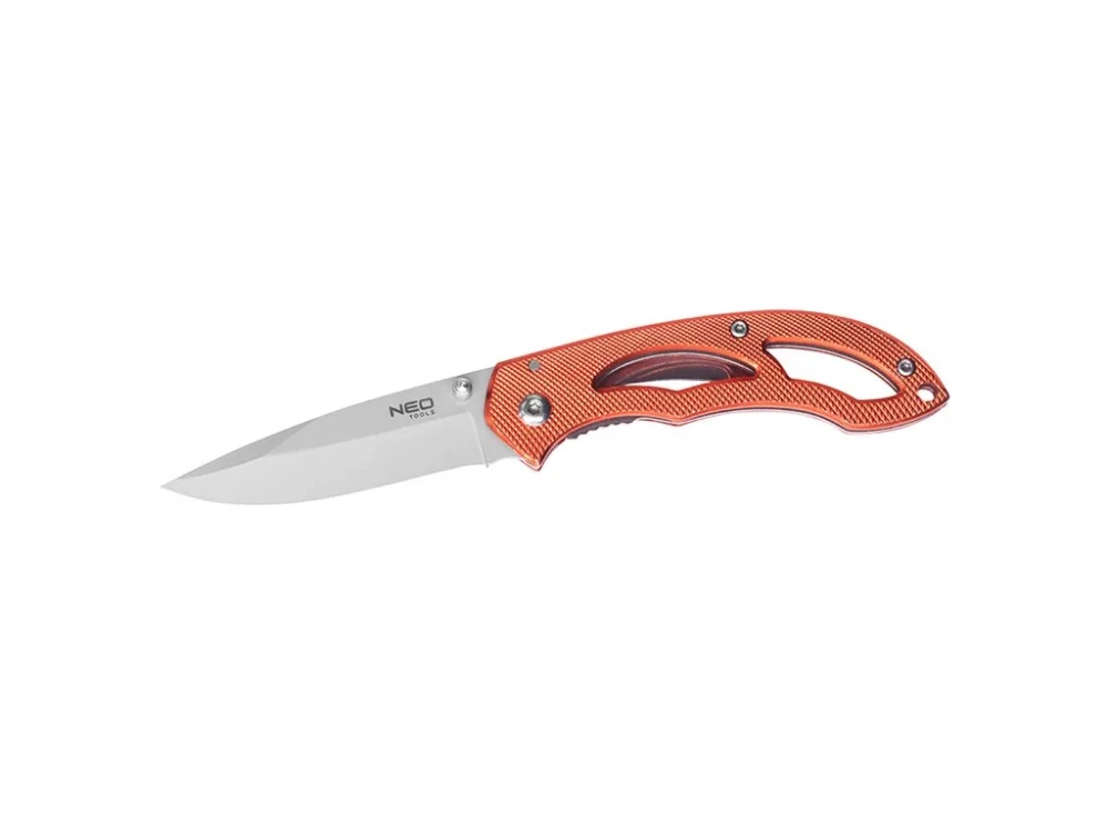 Skládací nůž o délce 16,5 cm, 63-182-1 od společnosti NEO TOOLS je sada 5 víceúčelových nástrojů, které je dobré mít vždy po ruce. Model skládacího nože z robustní nerezavějící oceli 3Cr13 je tou správnou volbou pro různé projekty. Stejně dobře poslouží pro domácí použití, v dílně nebo na výpravě za přežitím. Celková délka nástroje je 165 mm, přičemž délka čepele je 65 mm. Skládací nůž NEO TOOLS má zabudovaný klip na opasek a bezpečnostní pojistku, která zabraňuje neočekávanému zavření.